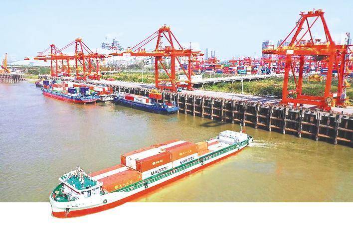 湖北长江船舶供应链公司参建的汉江首艘换电模式纯电池集装箱船——华航新能1。 (受访单位供图)