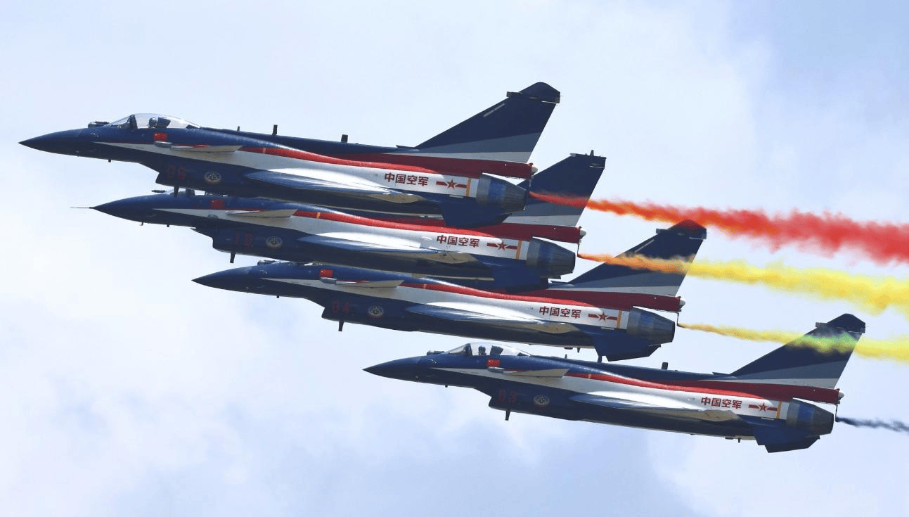 尤为值得关注的是,机背增大的背鳍结构可容纳更多电子设备与燃油、烟剂,既能保障编队飞行的通讯协同,又能延长单次表演续航时间,而机头红外搜索与跟踪系统、进气道两侧导弹逼近红外告警设备等作战装备均得以保留,使其可随时切换至实战部署状态,充分彰显中国航空技术的集成化与多元化优势。