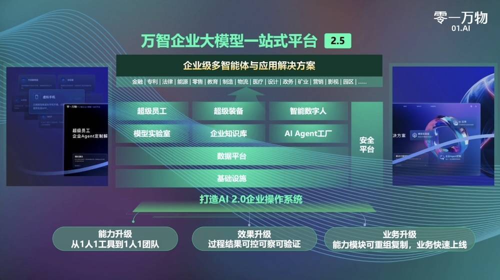 同时,零一万物“万智平台”也正式升级至2.5版本,支持多Agent批量上岗、角色分工、流程拆解、目标驱动协同与结果自动交付。